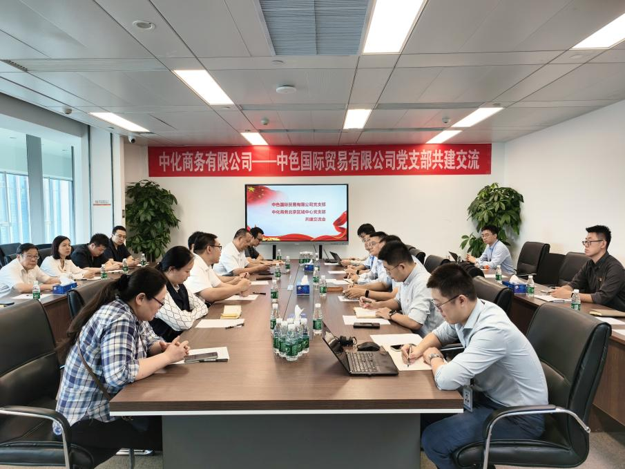 中色国际贸易有限公司第二、四联合党支部近日赴中化商务有限公司与其北京区域中心党支部开展共建交流活动,  中色国贸第二、四联合党支部分享了党建赋能业务发展的创新实践。