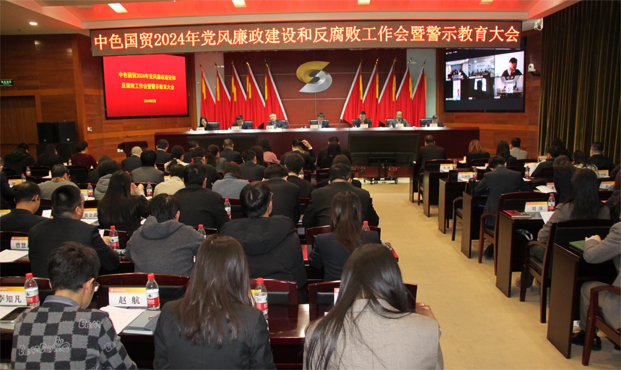 2月21日,中色国贸召开2024年党风廉政建设和反腐败工作会暨警示教育大会。党委书记、董事长杜兴荣出席会议并讲话,党委副书记、总经理崔晗主持会议并传达学习二十届中央纪委三次全会精神、集团公司党风廉政建设和反腐败工作会议精神,同时就贯彻落实会议精神提出要求,党委委员、纪委书记陈斌作纪委工作报告、通报典型案例。