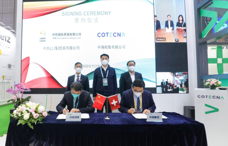 11月6日,在第五届中国国际进口博览会上,中色国贸所属中色(上海)贸易有限公司与中瑞检验有限公司举行战略合作协议签约仪式。