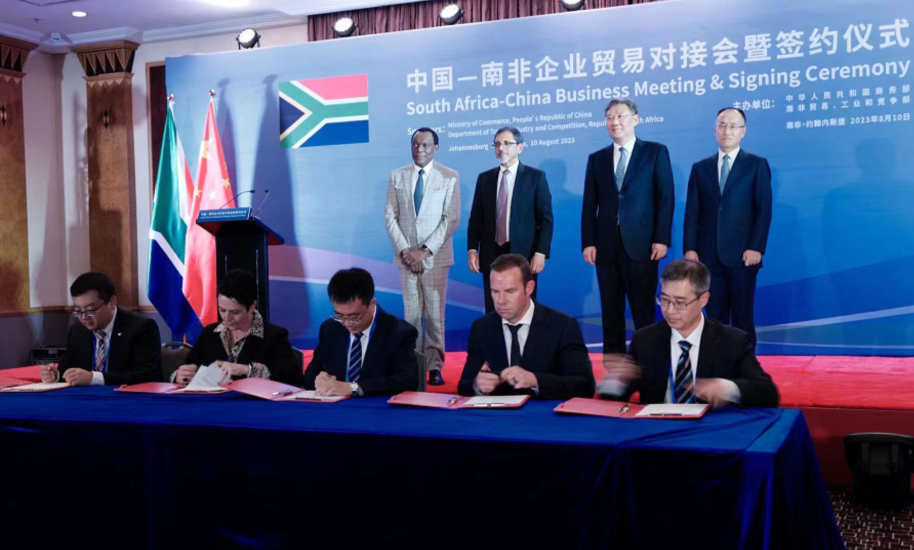 2023年8月10日,中国商务部在南非约翰内斯堡组织中-南贸易企业在南非开展贸易促进活动,以加强中南经贸往来,推动两国企业务实合作。中国商务部部长王文涛、南非贸工部部长易卜拉欣·帕特尔、中国驻南非使馆大使陈晓东、金砖国家工商理事会南非理事会理事斯塔夫罗斯·尼古拉出席活动并分别致辞。中色国贸董事长杜兴荣带队参加。