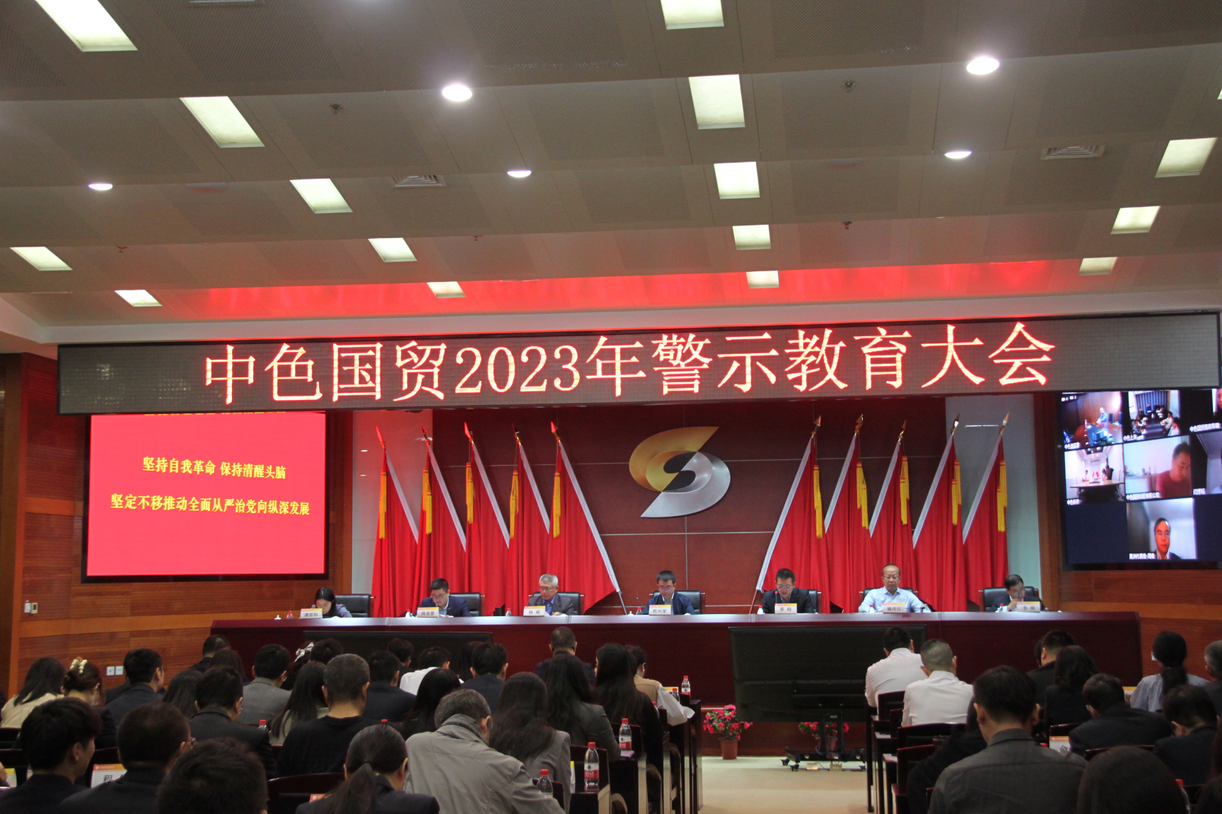 为进一步学习贯彻党的二十大精神和二十届中央纪委二次全会精神,全面落实集团党委2023年党风廉政建设和反腐败工作会议部署及警示教育大会要求,10月23日,中色国贸在中国有色大厦三层会议室召开警示教育大会,深入开展党性党风党纪教育,以案为鉴、以案示警、以案明纪,以全面从严治党推动全面从严治企向纵深发展。会议由党委副书记、总经理崔晗主持,纪委书记陈斌通报典型案例,党委书记、董事长杜兴荣做总结讲话。