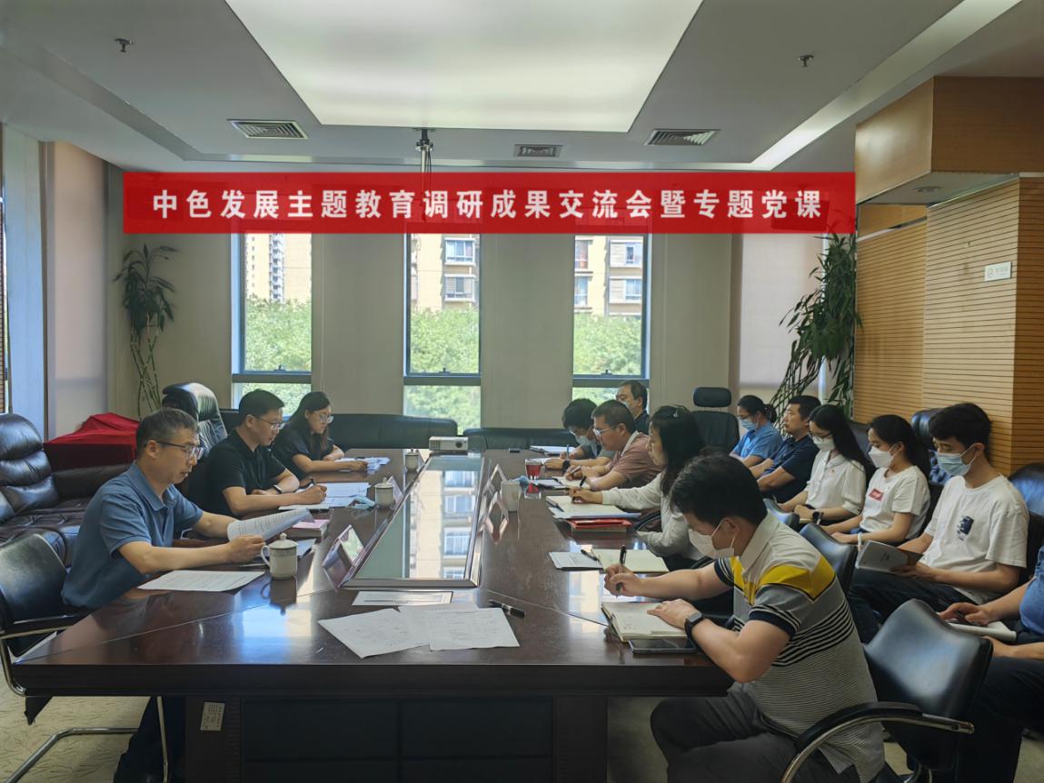 6月15日,中国有色集团出资企业中色发展投资有限公司(简称:中色发展)召开主题教育调研成果交流会。集团公司主题教育第三巡回指导组副组长李春华一行到会指导。中色发展党支部书记、执行董事、总经理赵文通主持会议。