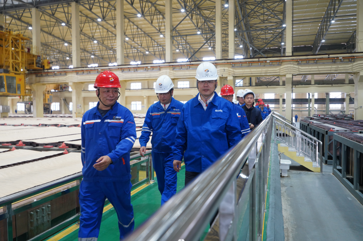 图丨奚正平董事长参观中色大冶弘盛铜业电解片区