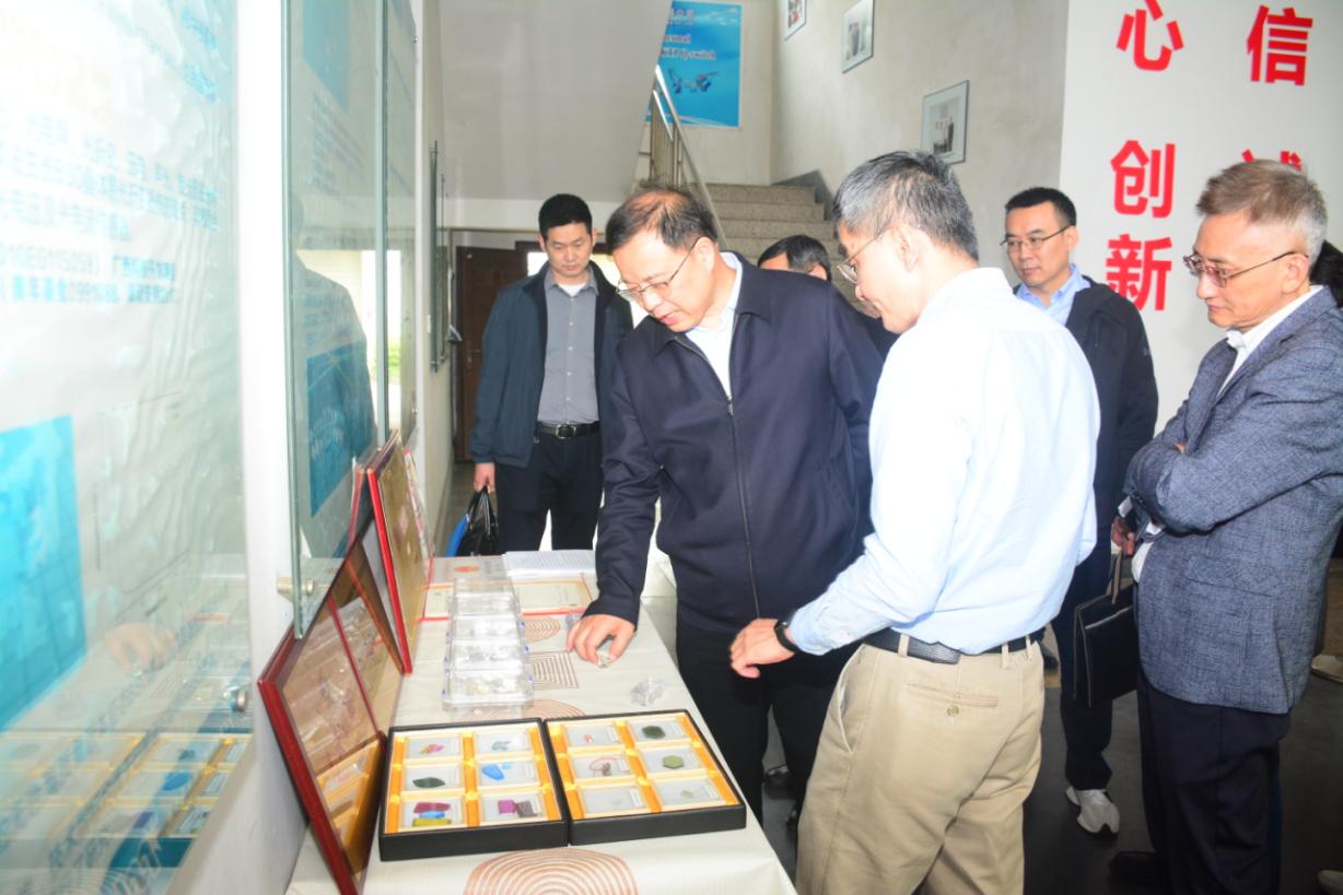 在资综所,奚正平书记现场察看了该所在工艺矿物学、选矿、冶金试验室等的研究条件,在了解到资综所是广西矿业工程院运行的主要依托实体,主要研究黄金选冶、镍钴渣、氧化铅锌矿等资源综合利用技术及其药剂开发情况后,欣喜地表示,资综所具有潜在较强研究实力,集团公司将研究如何更好发挥资综所作用。