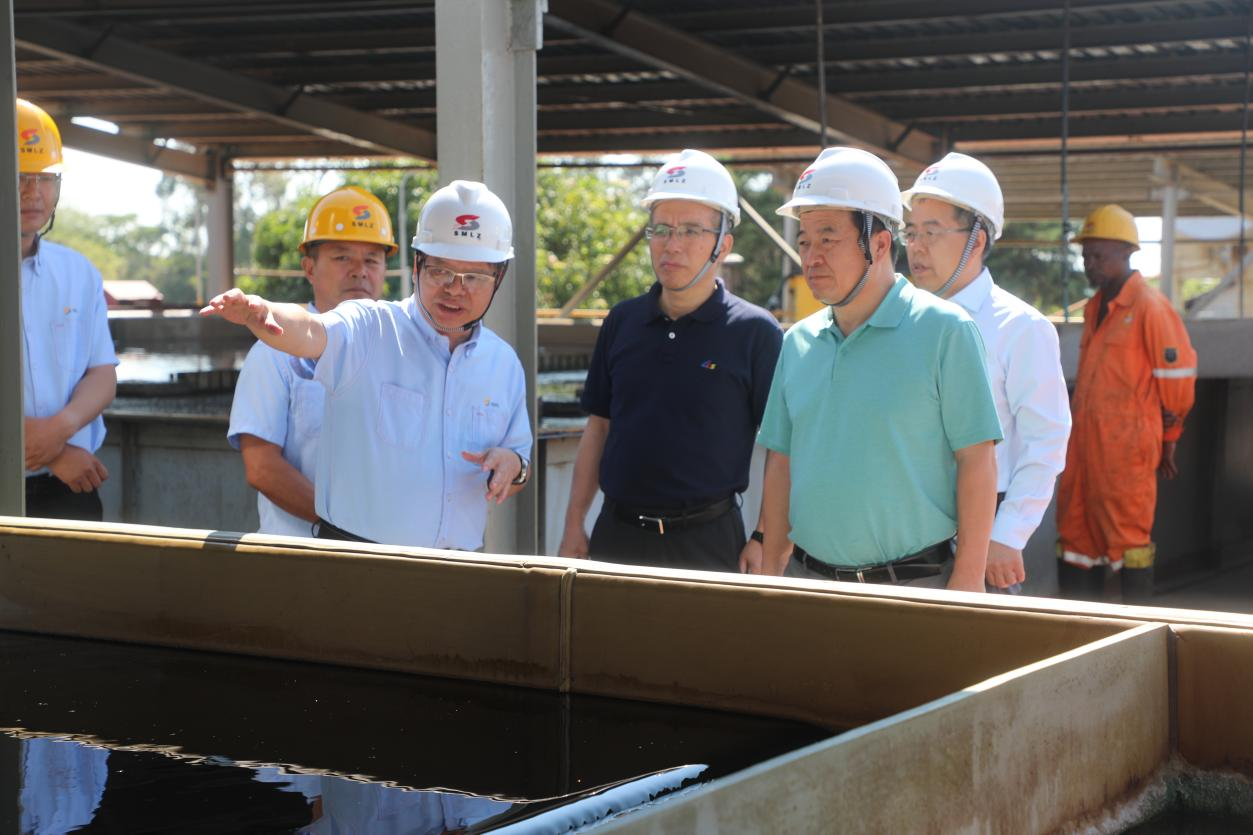 11月10日至11日,在中色卢安夏,文岗一行实地调研了中赞职业技术学院运行管理情况,深入考察了巴鲁巴东露天矿区、湿法厂堆场、尾矿坝、电积车间以及卢安夏新矿项目等核心生产区域,并专程前往28号竖井中控室,了解抽水设备运行状态和实时进度。