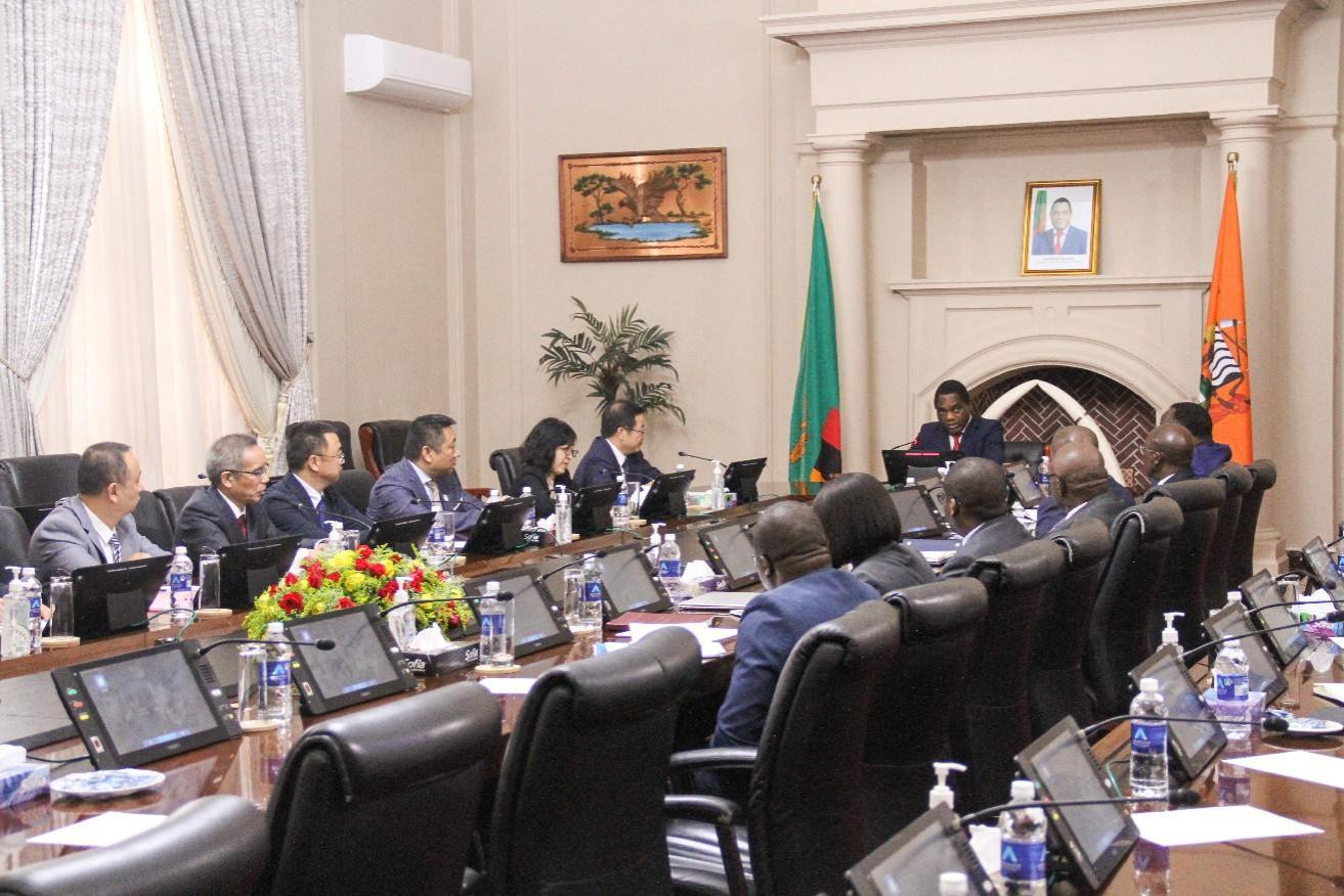 文岗拜会赞比亚总统哈凯恩德·希奇莱马