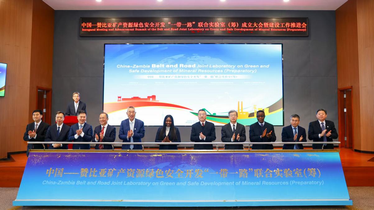 12月17日,中国—赞比亚“一带一路”联合实验室国家级科技创新平台建设工作推进会在北京科技大学举行。该实验室聚焦绿色矿产领域,是中赞两国首个“一带一路”联合实验室。中赞两国政府、高校、科研机构及中外合作建设单位代表齐聚一堂,共襄盛举。赞比亚驻华大使馆大使代表娜玛卡朵,赞比亚大学校长蒙迪亚·穆亚,国家矿山安全监察局党组成员、副局长裴文田,北京科技大学党委书记武贵龙、校长杨仁树,中国工程院院士吴爱祥,铜陵有色金属集团股份有限公司党委书记、总经理文燕,金诚信矿业管理股份有限公司董事长王青海;中国有色集团总经理张晋军、副总经理范巍出席会议。