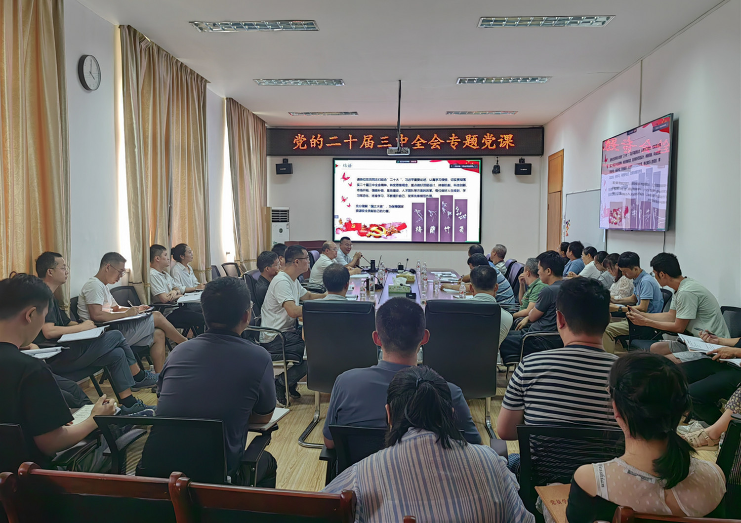 9月30日,中色桂林院党委委员、副总经理赵延朋以《深入学习贯彻二十届三中全会精神,推动桂林院大地质高质量发展》为题讲授党的二十届三中全会精神专题党课,充分发挥引学、带学、促学的作用。地质事业部党总支、生态事业部党支部、工程公司党支部党员、发展对象、入党积极分子等共计60余人参加学习。