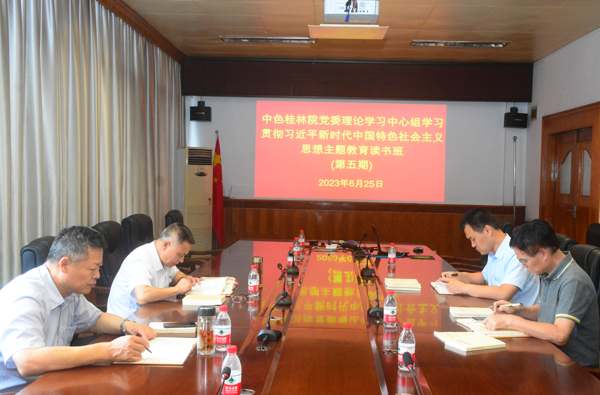 6月25日至6月26日,中色桂林院党委举办理论学习中心组学习贯彻习近平新时代中国特色社会主义思想主题教育第五期读书班,闭门集中学习《求是》杂志发表习近平总书记重要文章《健全全面从严治党体系 推动新时代党的建设新的伟大工程向纵深发展》文章以及《习近平新时代中国特色社会主义思想的世界观和方法论专题摘编》《习近平关于调查研究论述摘编》《论党的自我革命》《习近平新时代中国特色社会主义思想专题摘编》。这次会议也标志着为期7天的主题教育读书班按要求完成各项学习任务圆满结束。集团公司党委第一巡回指导组王伟强同志以视频的形式参加会议,中色桂林院党委副书记、董事长、总经理杨国高主持读书班并讲话,公司领导班子成员,职能部门和相关业务单位负责人参加读书班集中学习和研讨。