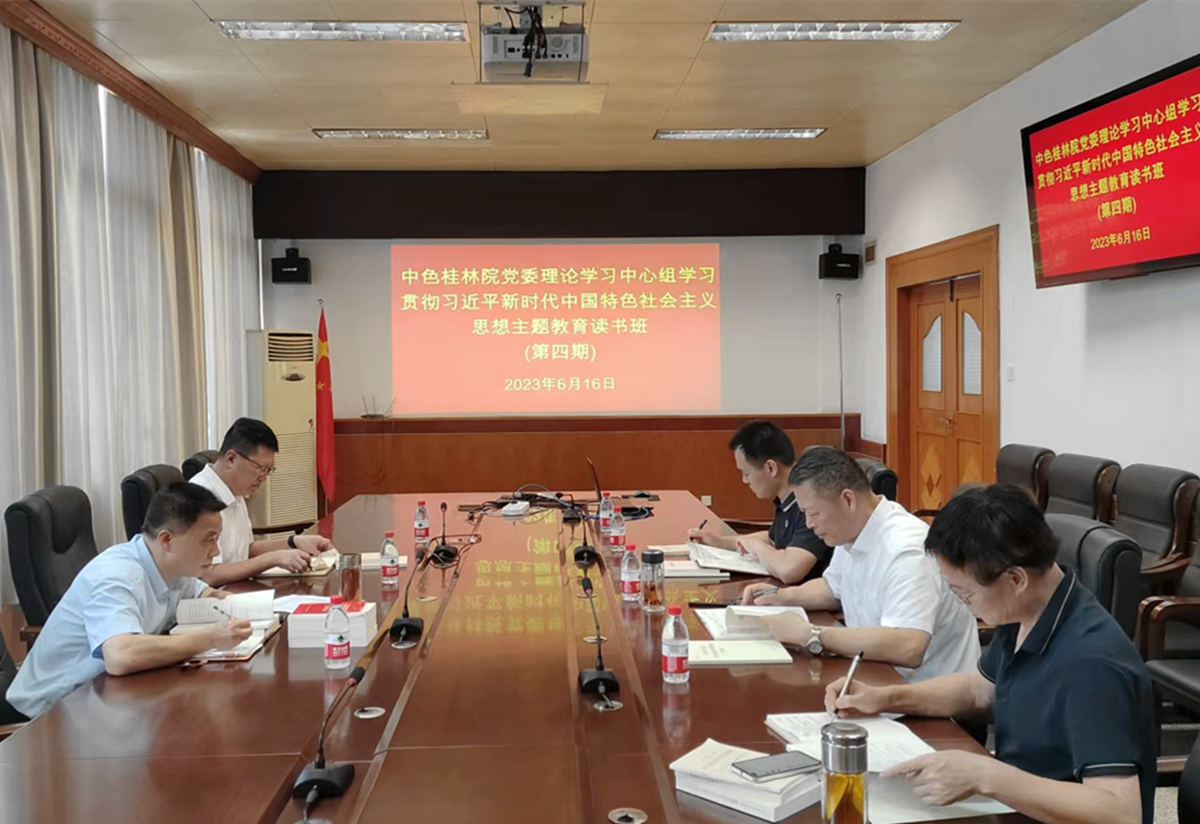 6月14日和6月16日,中色桂林院党委举办理论学习中心组学习贯彻习近平新时代中国特色社会主义思想主题教育第四期读书班,闭门集中学习习近平总书记关于发展国有经济和国有企业改革发展党建有关重要论述及习近平总书记《论党的自我革命》、《习近平新时代中国特色社会主义思想专题摘编》、《习近平新时代中国特色社会主义思想学习纲要(2023年版)》等重点书目,并围绕习近平总书记对集团公司三次重要指示批示精神和人才强企主题开展学习研讨。中色桂林院党委副书记、董事长杨国高主持读书班,党委委员、纪委书记高贤明,党委委员、总会计师刘宗勇分别围绕习近平总书记对集团公司三次重要指示批示精神和人才强企主题作中心发言。