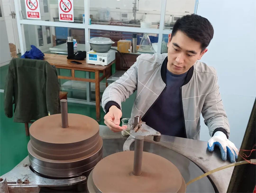 在聚晶立方氮化硼(PCBN)复合片的生产中,莫培程发现,生产所用的合金衬底原始厚度为4.0mm,但是最终的产品只要求合金厚度为2.0mm甚至更低,为何不在一开始就降低合金厚度呢?带着这样的疑问,他与相关技术人员一起向主管领导汇报沟通,并主动参与薄片(厚度为1.6-2.5mm)PCBN复合片的研究,很快便取得了良好效果。一个小小的发现,将生产效率提升了50%,真正做到了提质增效。