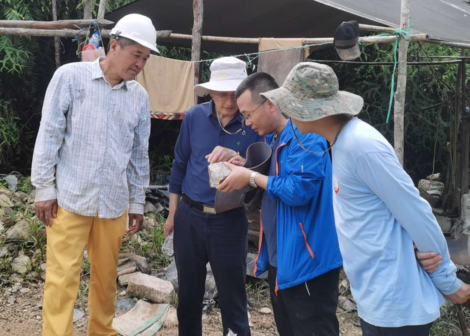 4月9日,朱景和董事长一行驱车5小时前往印尼金山金矿项目对项目组成员进行了慰问,仔细询问了解钻探进度、见矿成果、安全生产等情况,并与项目技术人员亲切交流,与业主方就矿山下一步勘查、合作进行了深入探讨。