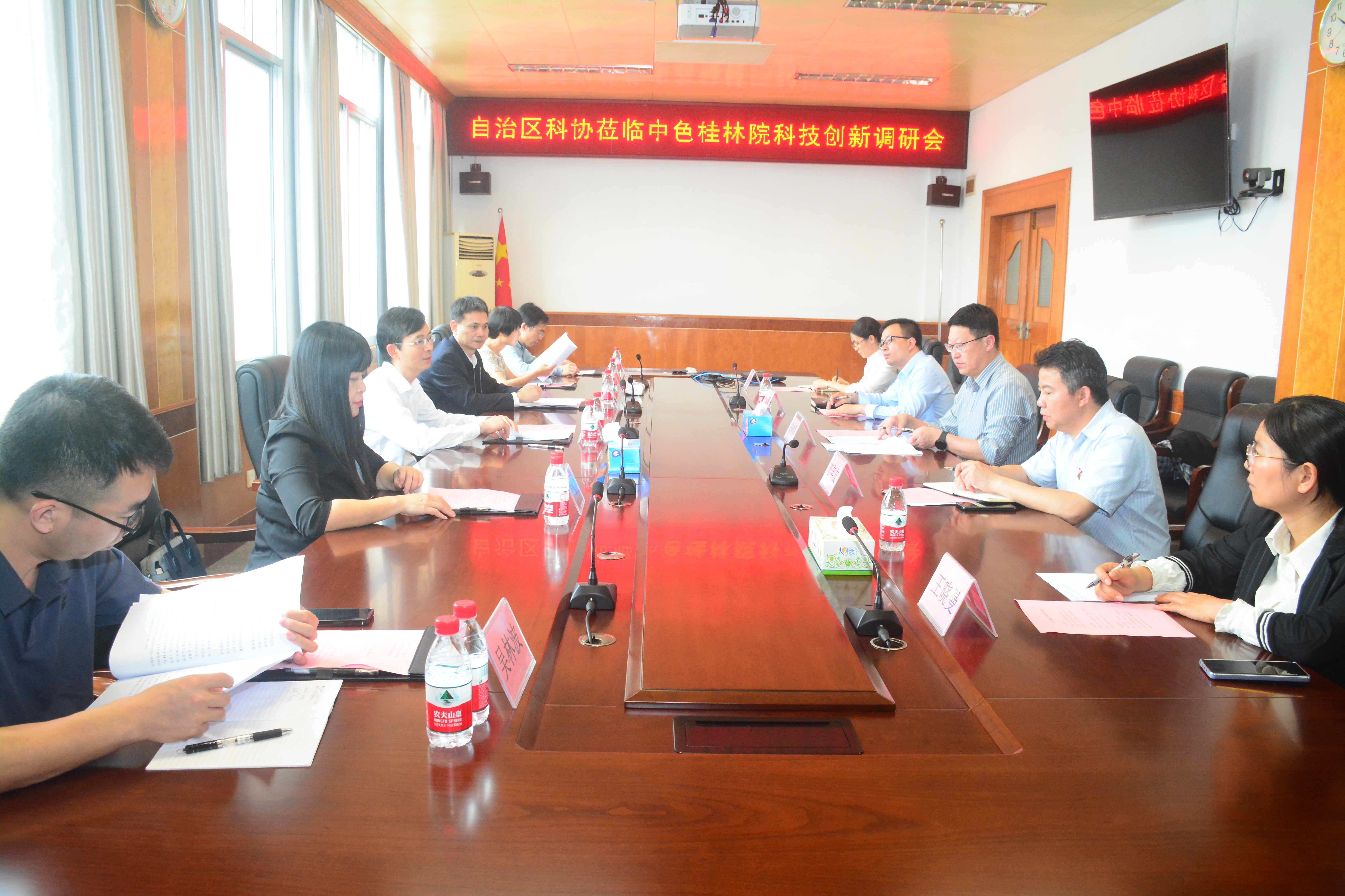 4月18日,广西科协党组成员、副主席朱其东一行到中色桂林院调研交流,公司党委委员、副总经理张向军陪同调研并参加交流座谈会。