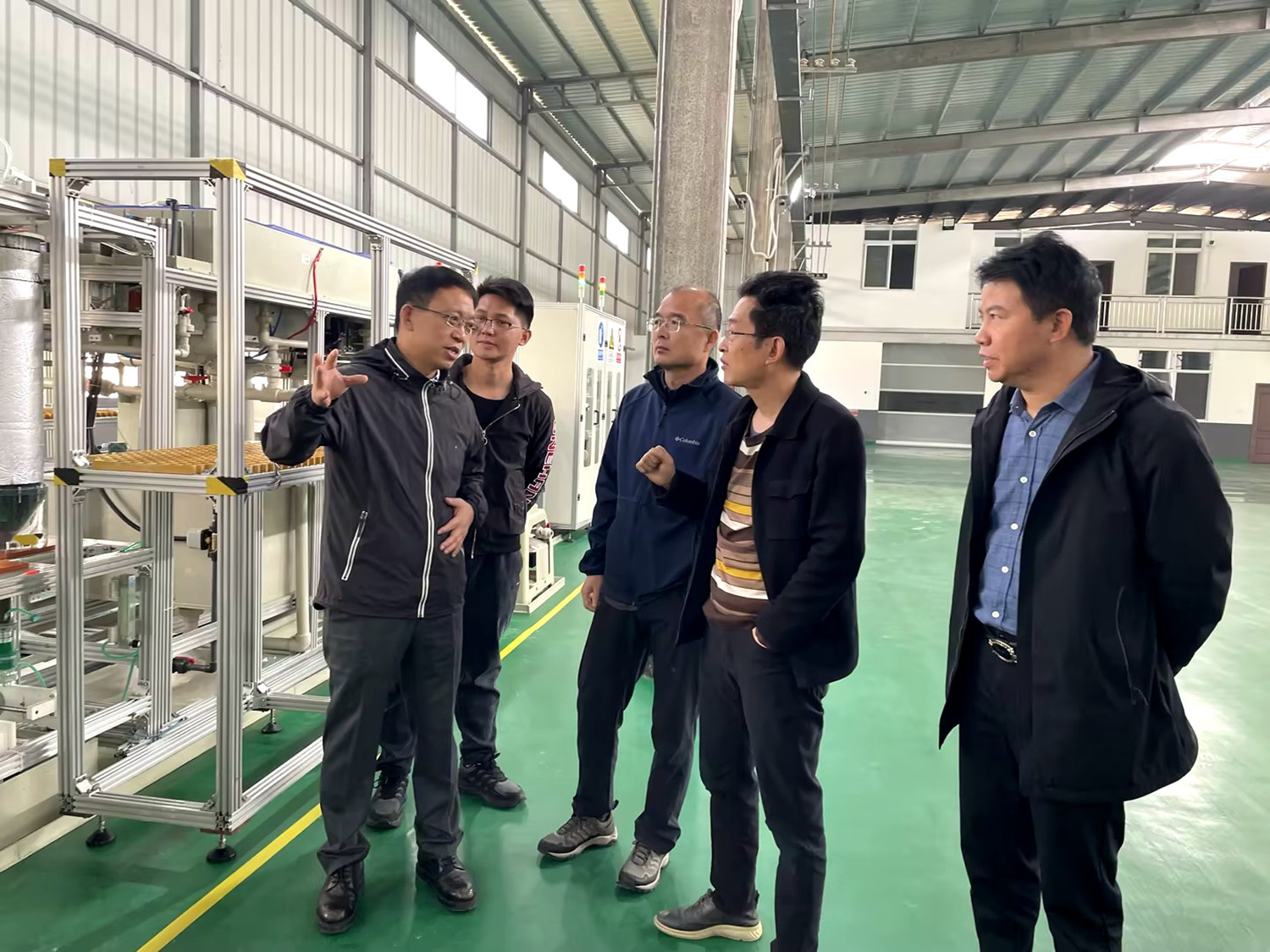 在特邦新材线锯科研生产线项目生产车间,外部董事一行实地察看了电镀线锯生产过程,就产品制备工艺流程、产品用途、市场经济效益及技术研发攻关情况等,与特邦新材相关负责人进行了现场交流。外部董事肯定了特邦新材在深化企业经营改革、强化科技创新力度以及拓展国际市场等方面取得的成绩,提出进一步优化公司治理结构、加快推进数智化转型升级、持续加强市场开发工作等建议,以期推进公司实现上市及高质量发展的目标。