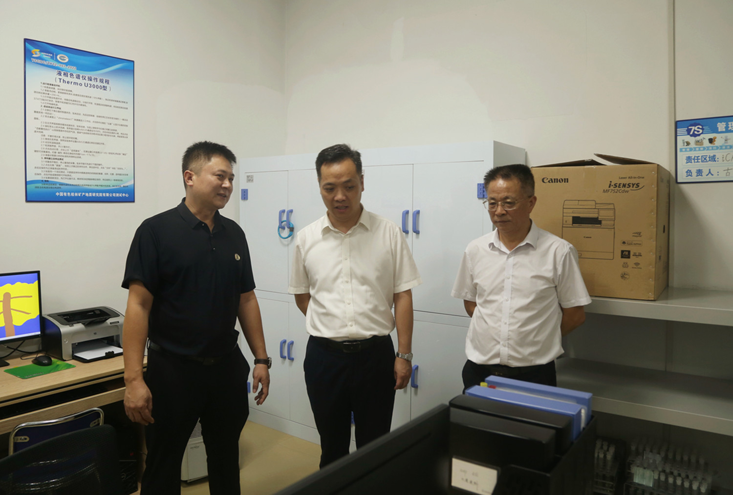 调研期间,孙环志一行先后实地调研了特邦新材超硬精密刀具、金刚石绳锯、锯片等产品生产车间,工程中心硅碳负极材料生产线,百锐光电水热法KTP晶体生长区及实验室,矿产地质事业部、生态环境事业部及分析测试中心实验室等,详细了解了产品的生产工序、技术工艺、产品用途、市场经济效益以及核心技术研发等情况,并与业务单位负责人就产品生产现状、技术服务开展情况及发展前景等问题进行深入交流和探讨。