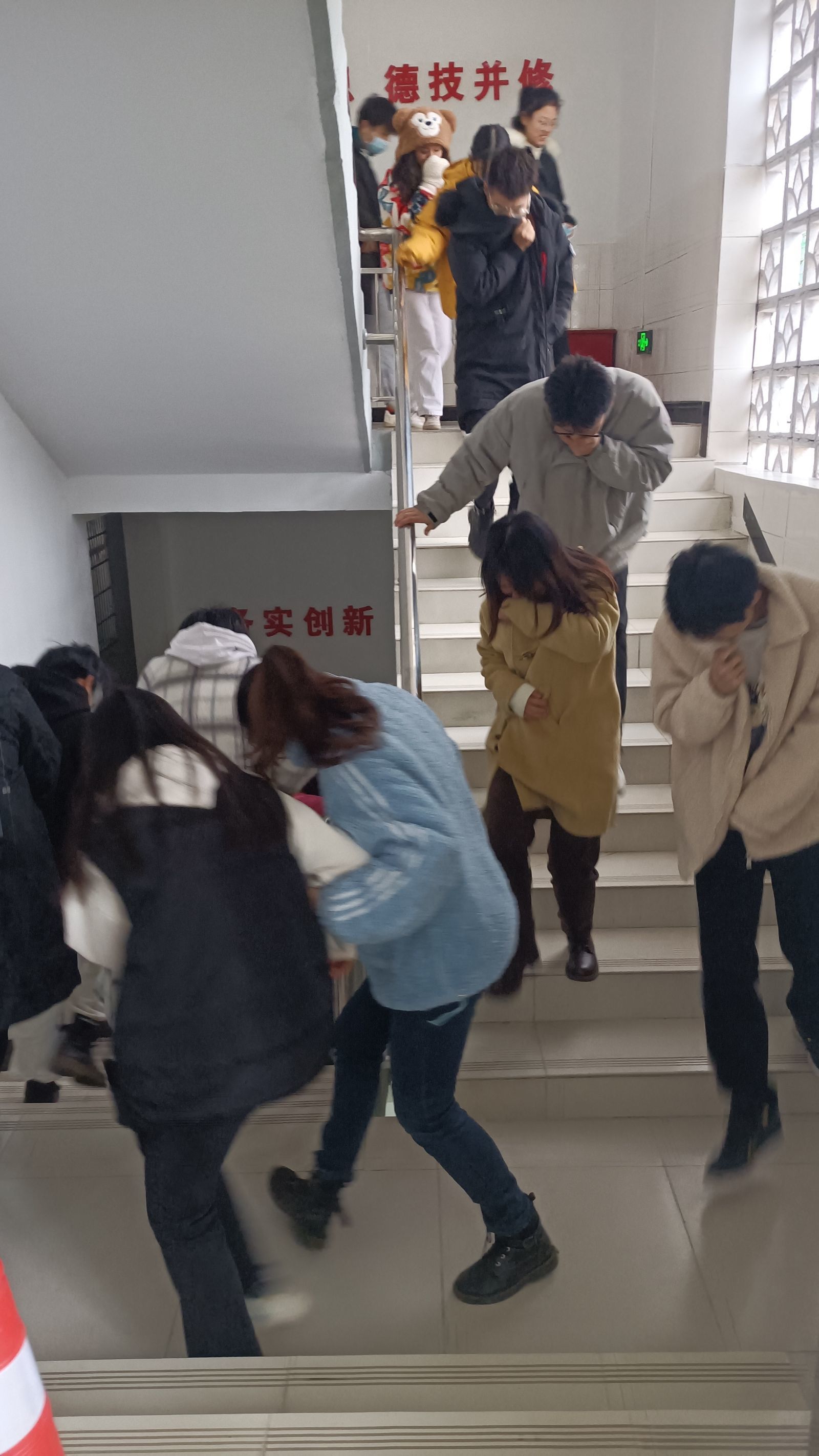 11月30日下午3时26分,随着火情警报的拉响,大家分工协作,灭火组迅速抵达火情地点查看,正确处置火情并视具体情况模拟启动消防联动机制。学生组组织全体学生,听从老师指挥,在楼道弯下身体,手捂口鼻,小步快跑模拟逃生疏散,按预案规定线路有序撤出教学楼,到达指定的篮球场疏散集结地。管理组有序组织职工按逃生路线紧急疏散到安全地带,由专人负责清点人数,做到不漏一人。随着最后一名教师的撤出,演练时间记录人员通报了此次消防应急疏散演练用时,全程耗时2分14秒,创职教中心有史以来消防疏散演练速度新高。