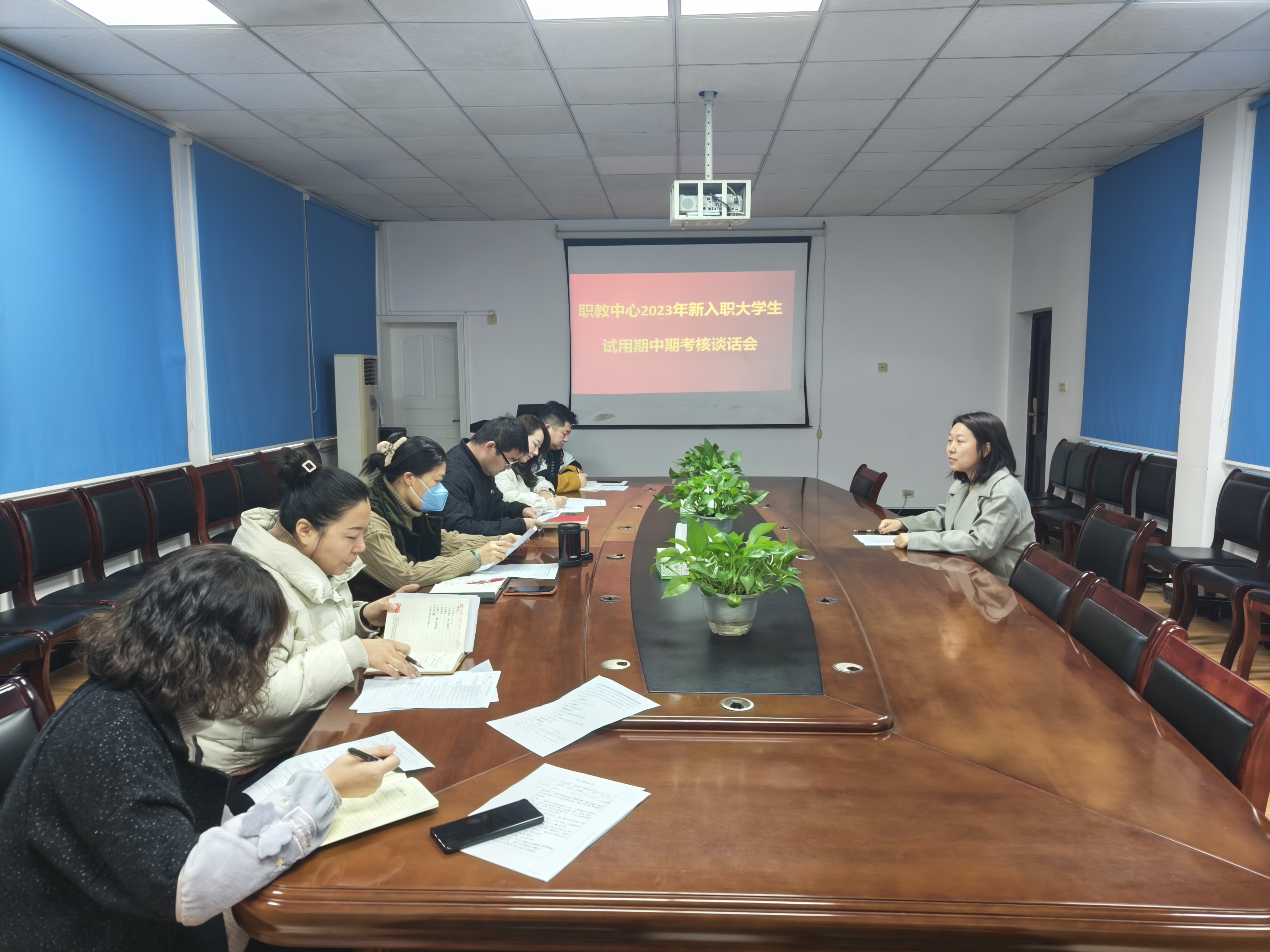 本次考核谈话主要由试用期述职、科室负责人反馈、领导发言、考核小组评分几个环节组成。就新入职大学生在试用期间的工作业绩、工作行为、工作能力三个方面进行综合考评,旨在促进交流、增进融合,尽快胜任本职岗位,也为中心对新员工转正提供重要依据。