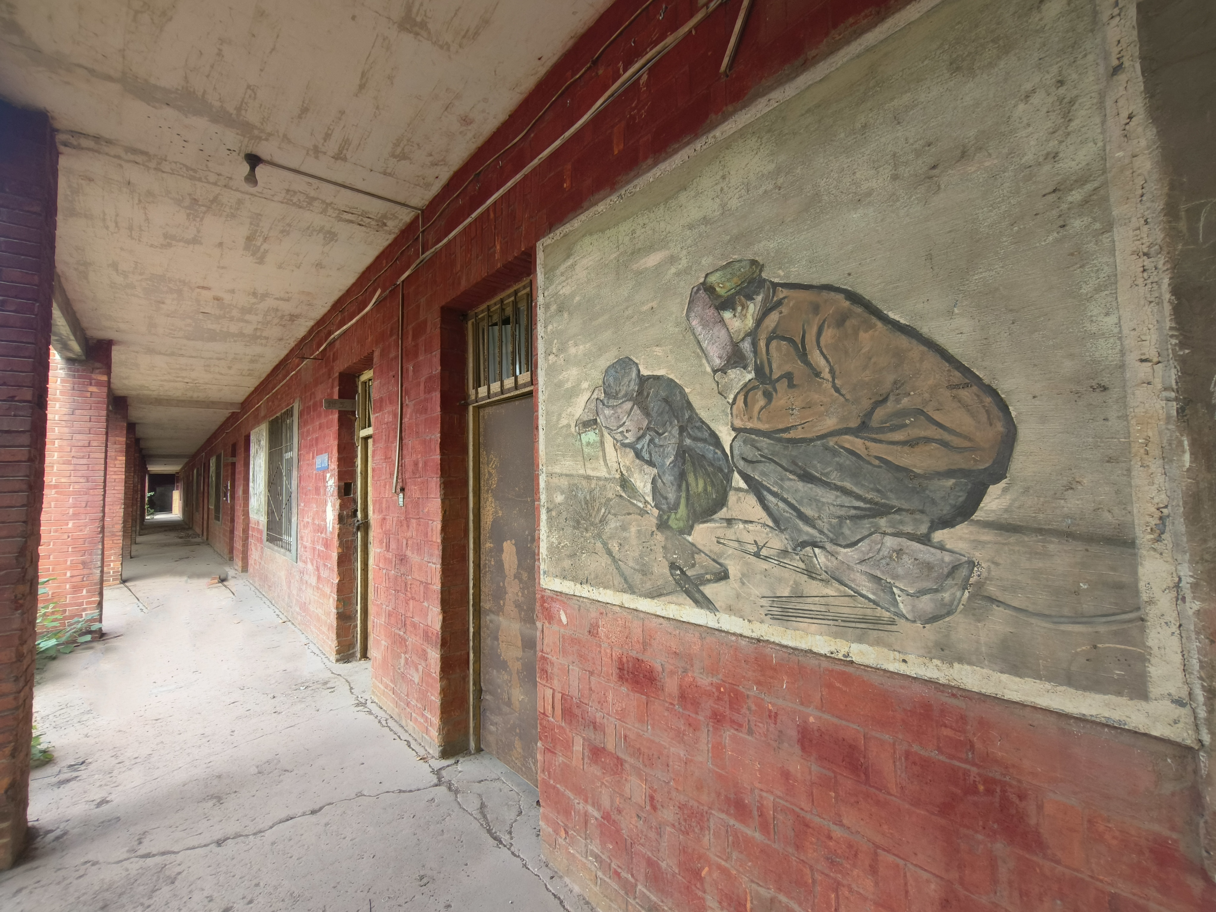“苦练技能、振兴有色”八个校训大字历经五十余载春秋,依旧清晰可辨。实训工厂教学楼墙面上,工人师傅们热火朝天搞生产的场景壁画依然鲜艳夺目。本次改造工程项目前期经过大量的技术论证与研究,旨在贯彻“修旧如旧、建新如故”的原则,在保持该实训工厂悠久传统历史底蕴的前提下,将原有破损、丧失使用功能区域进行修缮及加固,保留和恢复原有样貌,彰显有色技校、电大城市记忆,为大冶有色技能人才培训培养再谱新篇。