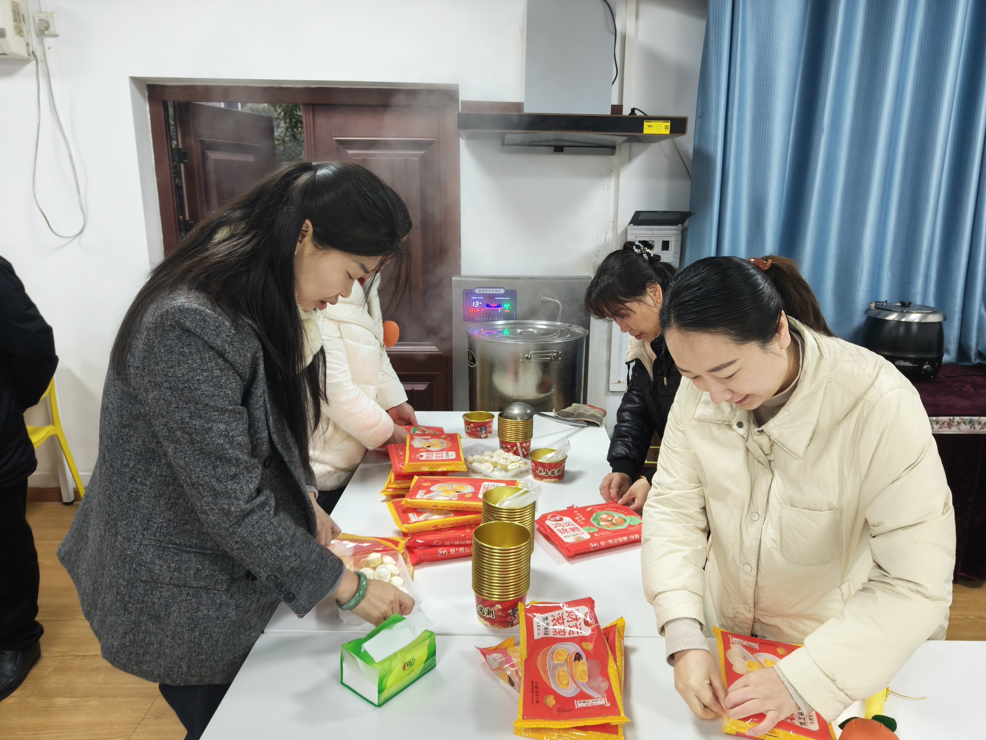 一大早,中心工会组织各科室负责人煮上了寓意着财源滚滚的“元宝汤圆”、寓意着事事如意的“柿子汤圆”和寓意着年年有余的“锦鲤汤圆”,为全体教职工送上了这份特别的节日祝福。热腾腾的汤圆不仅温暖了大家的胃,更温暖了大家的心,现场洋溢着浓浓的节日气氛。