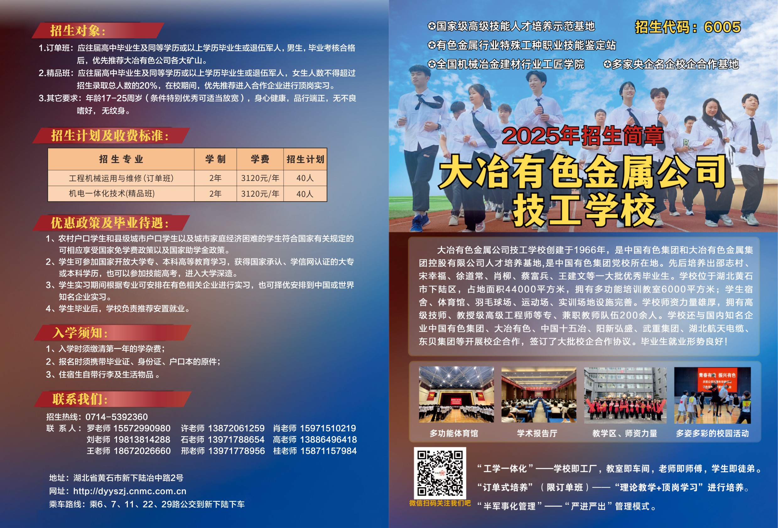 大冶有色金属公司技工学校2025年招生火热报名中!